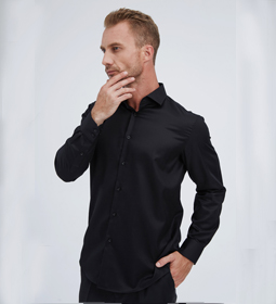产品特点:热销男士100%棉黑色斜纹液氨免熨长袖衬衫,适合职场精英男士穿着,同时休闲上班两不误。