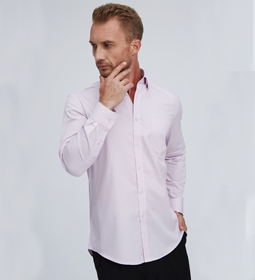 男士淡粉色斜纹涤棉长袖衬衫,将男士的刚强与柔美融合在一起,凸显了男士的成熟魅力与时尚的个人穿衣品味。