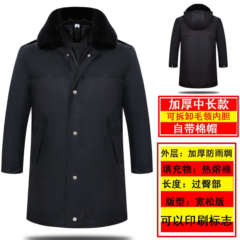 产品特点:采用优质面料,可拆卸设计,满足员工冬天户外作业的需求,保暖舒适,方便清洗保养,适合物业酒店以及高档写字楼保安人员穿着。