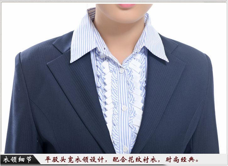此款女西服采用孔雀蓝作为主色调,打破传统的黑灰色设计,让您在职场中更加的靓丽,采用