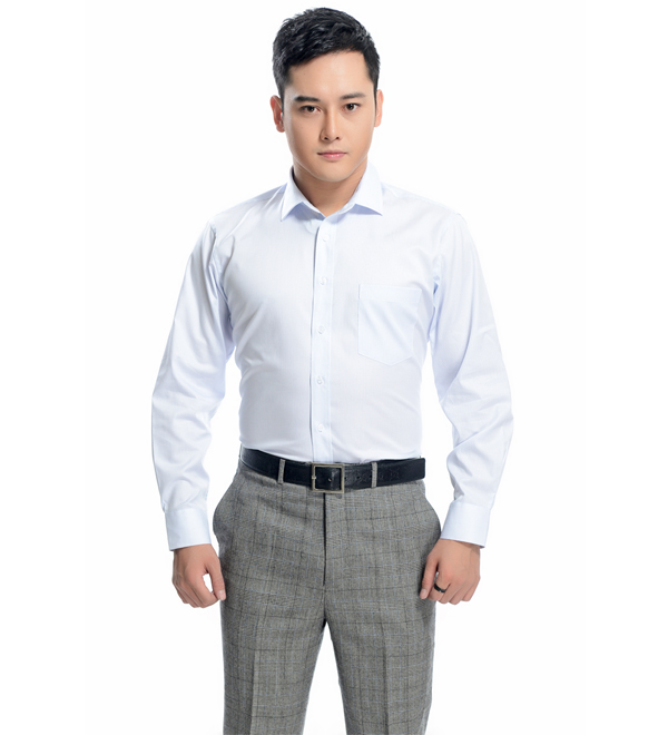 素色衬衫是最保险的图案。素色即只使用同一种颜色的纱线纺织,没有明显的图案和其他色彩。一般来说,白色和蓝色素色衬衫是最常见的,是男士衣橱的必备款。有些衬衫面料,因为织法的关系,近看细看的话,可以看到细条纹和细斜纹,但远看仍然是素色效果,我们也认为是素色衬衫。